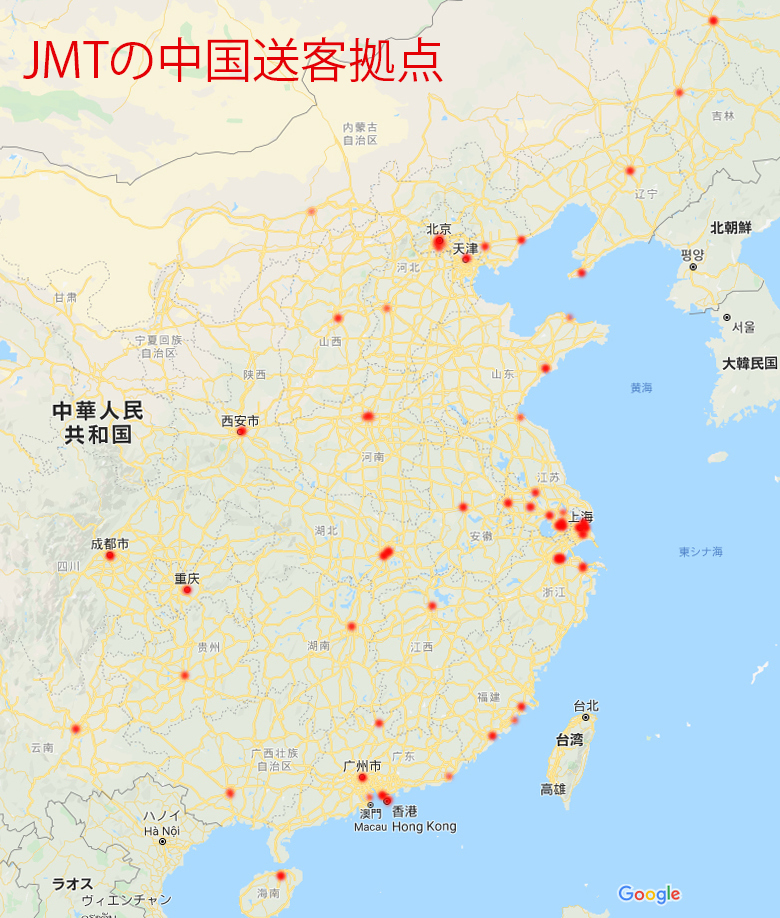 左の画像は、JMT送客拠点(地図赤点)になります。