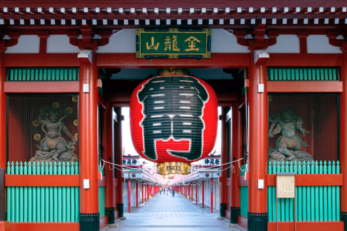 浅草寺位于东京都台东区,是日本现存的具有“江户风格”的民众游乐之地。其是东京都内最古老的寺庙。寺院的大门叫“雷门”,雷门是浅草寺的正门,全名为“风雷神门”,门的左侧是雷神,右侧是风神。而中间挂着重达700公斤的大灯笼,是浅草的象征。
