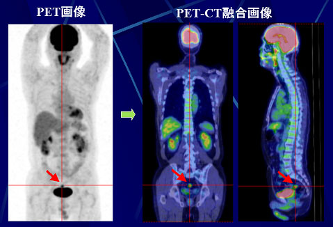 このFDGを人体に注射すると、ブドウ糖を良く取り込む「がん」に集まります。がん細胞は正常細胞に比べて数倍のブドウ糖を取り込むことから、画像として捉えることができます。患者さまの負担も少なく、正確な部位診断も可能となります。
